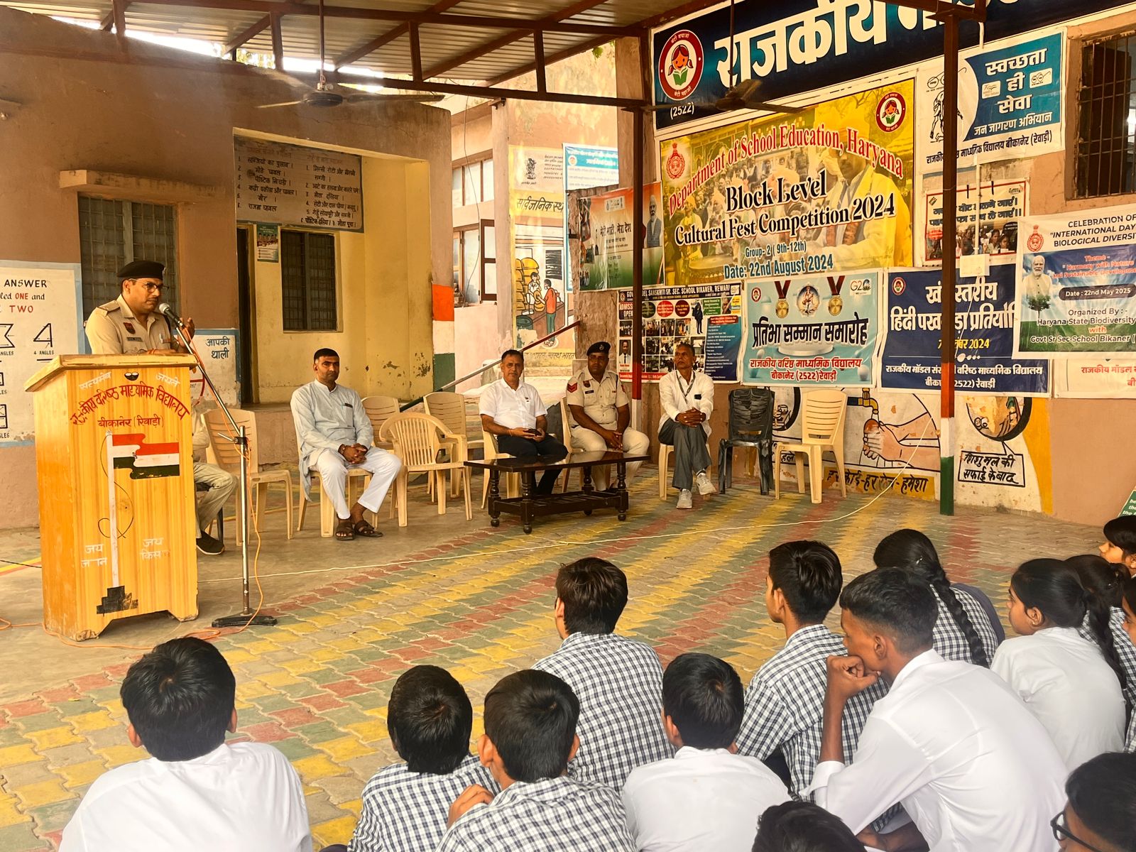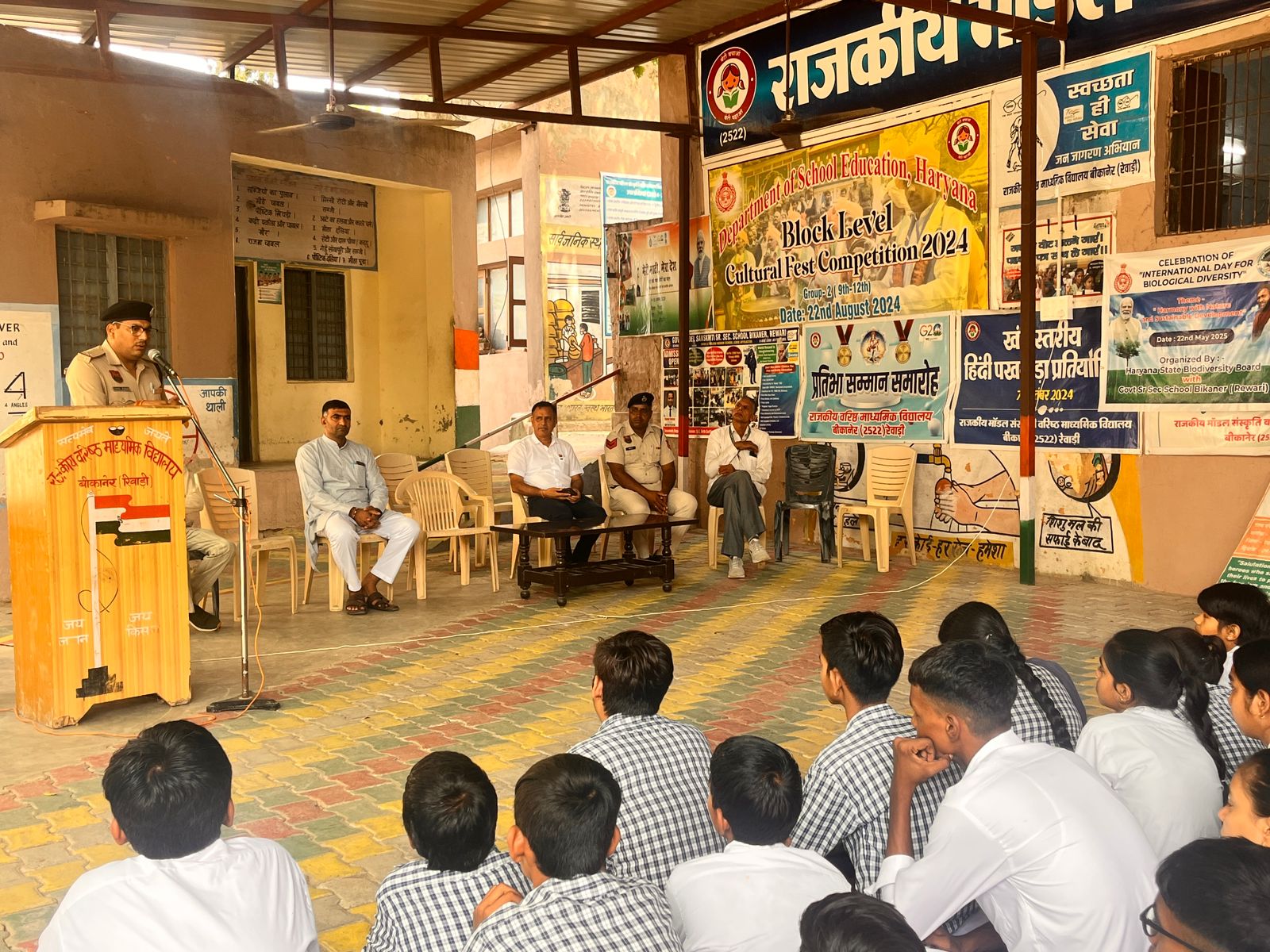 रेवाड़ी पुलिस का साइबर जागरूकता अभियान लगातार जारी, राजकीय माडल वरिष्ठ माध्यमिक विद्यालय गांव बीकानेर में स्टूडेंट्स/स्टाफ को किया साइबर अपराध बारें जागरूक।