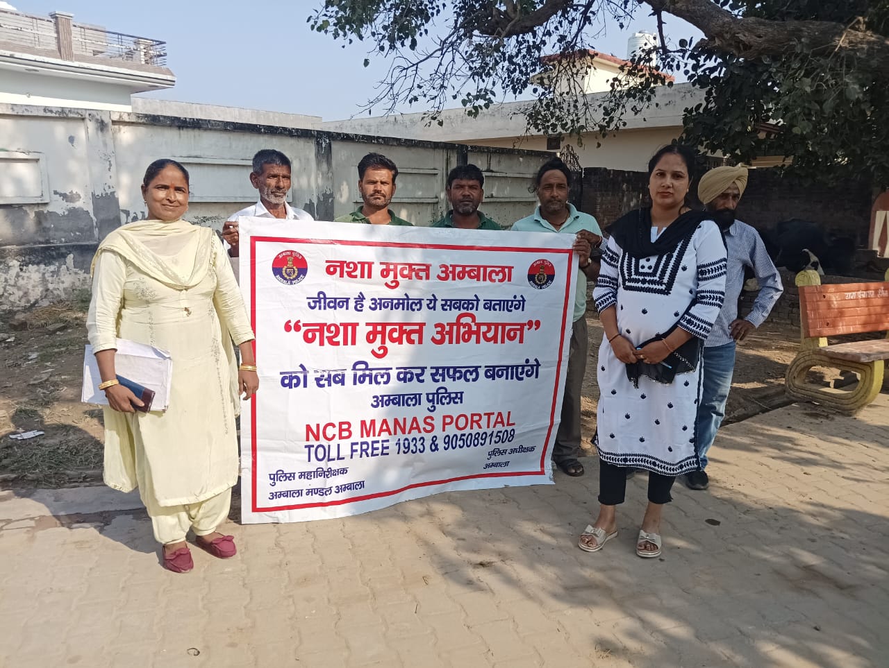 अम्बाला पुलिस द्वारा आमजन/युवाओं को साईबर जागरूकता, नशे से दूर रहने बारे किया जागरूक और पढाया यातायात नियमों का पाठ नशे बारे एनसीबी मानस पोर्टल ट्रोल फ्री नम्बर 1933 और 9050891508 पर व साइबर धोखाधड़ी होने पर तुरन्त हेल्पलाईन नं0 1930 पर काॅल कर सूचना